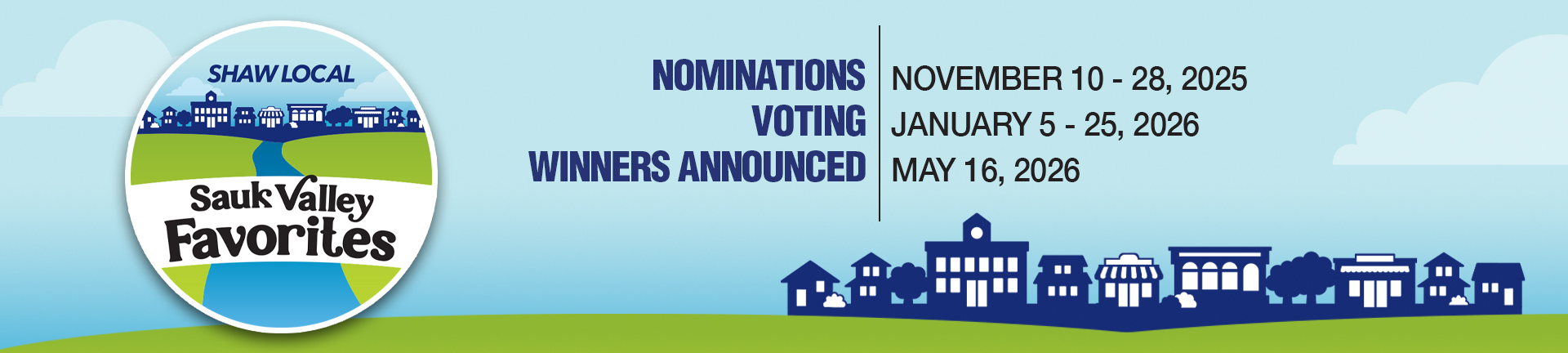 Nominations for Sauk Valley Favorites are officially closed. Voting for the top five in each category will begin January 5 and run through January 25. Stay tuned to see if your favorites made it to the next round. Help us celebrate the wonderful people and places in our community by casting your vote on January 5!